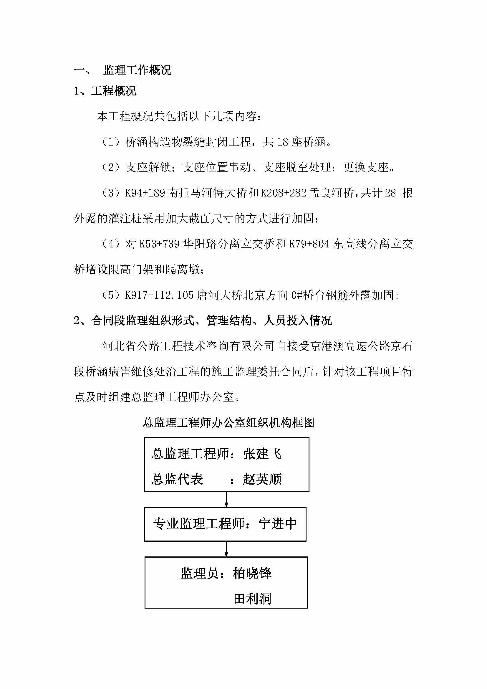 橋涵病害處治工程QH-1標監(jiān)理報告