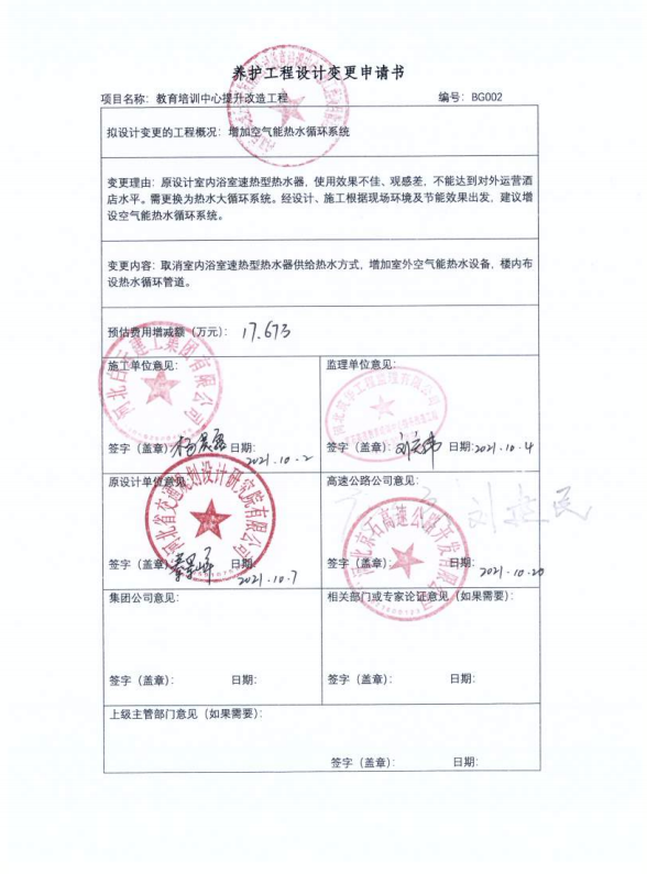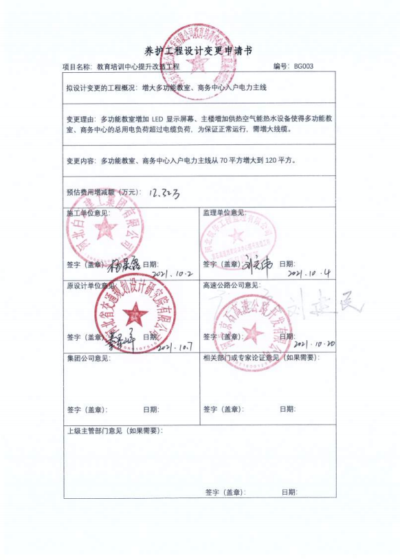 河北京石高速公路開發(fā)有限公司教育培訓(xùn)中心提升改造工程一期設(shè)計變更