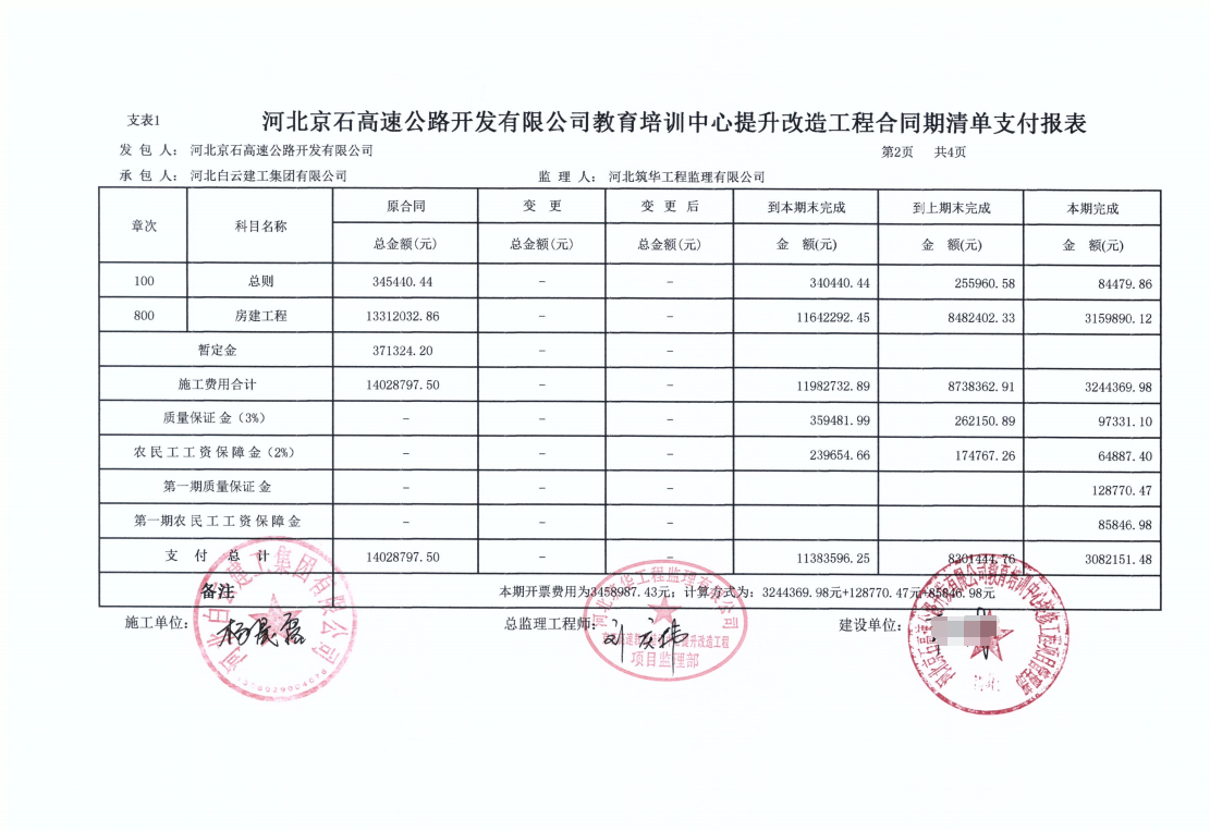 河北京石高速公路開發(fā)有限公司教育培訓(xùn)中心提升改造工程三期支付證書