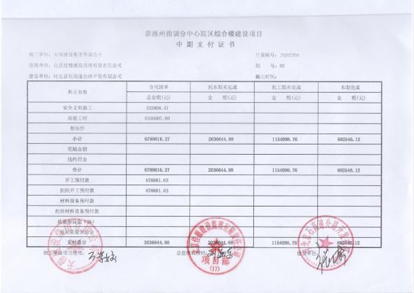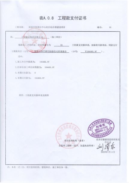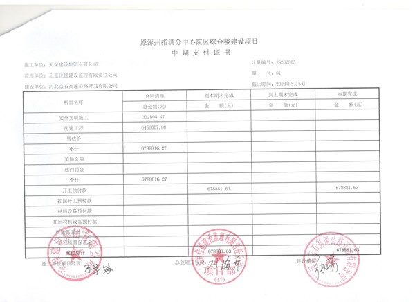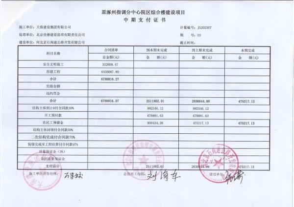 原涿州指調(diào)分中心院區(qū)綜合樓建設(shè)項(xiàng)目支付證書