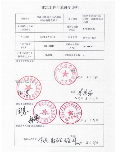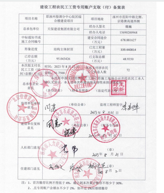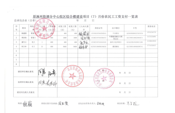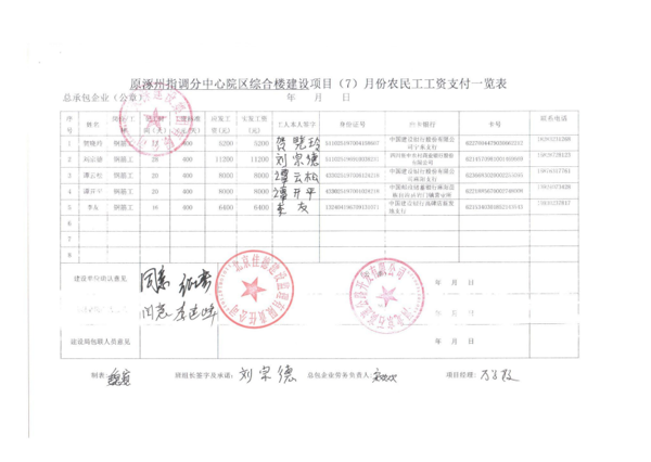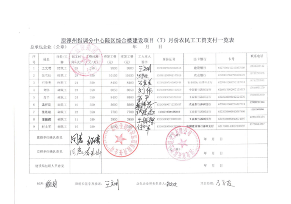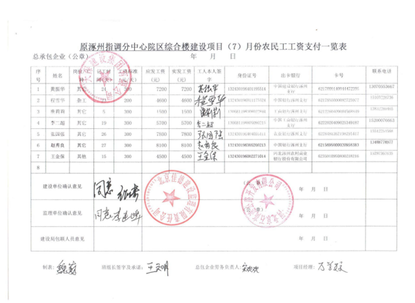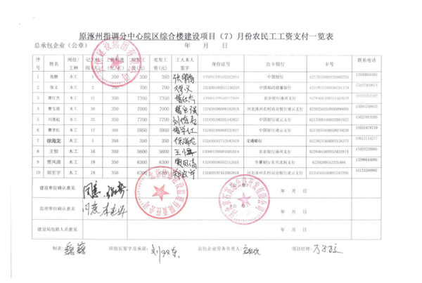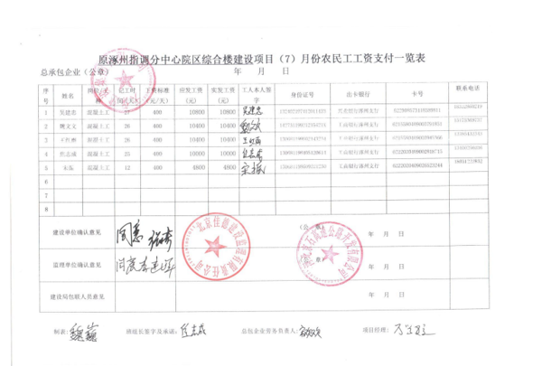 原涿州指調(diào)分中心綜合樓建設(shè)項(xiàng)目7月份農(nóng)民工工資發(fā)放公示