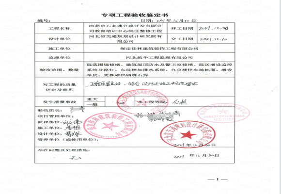 河北京石高速公路開發(fā)有限公司教育培訓(xùn)中心院區(qū)整修工程竣工驗(yàn)收