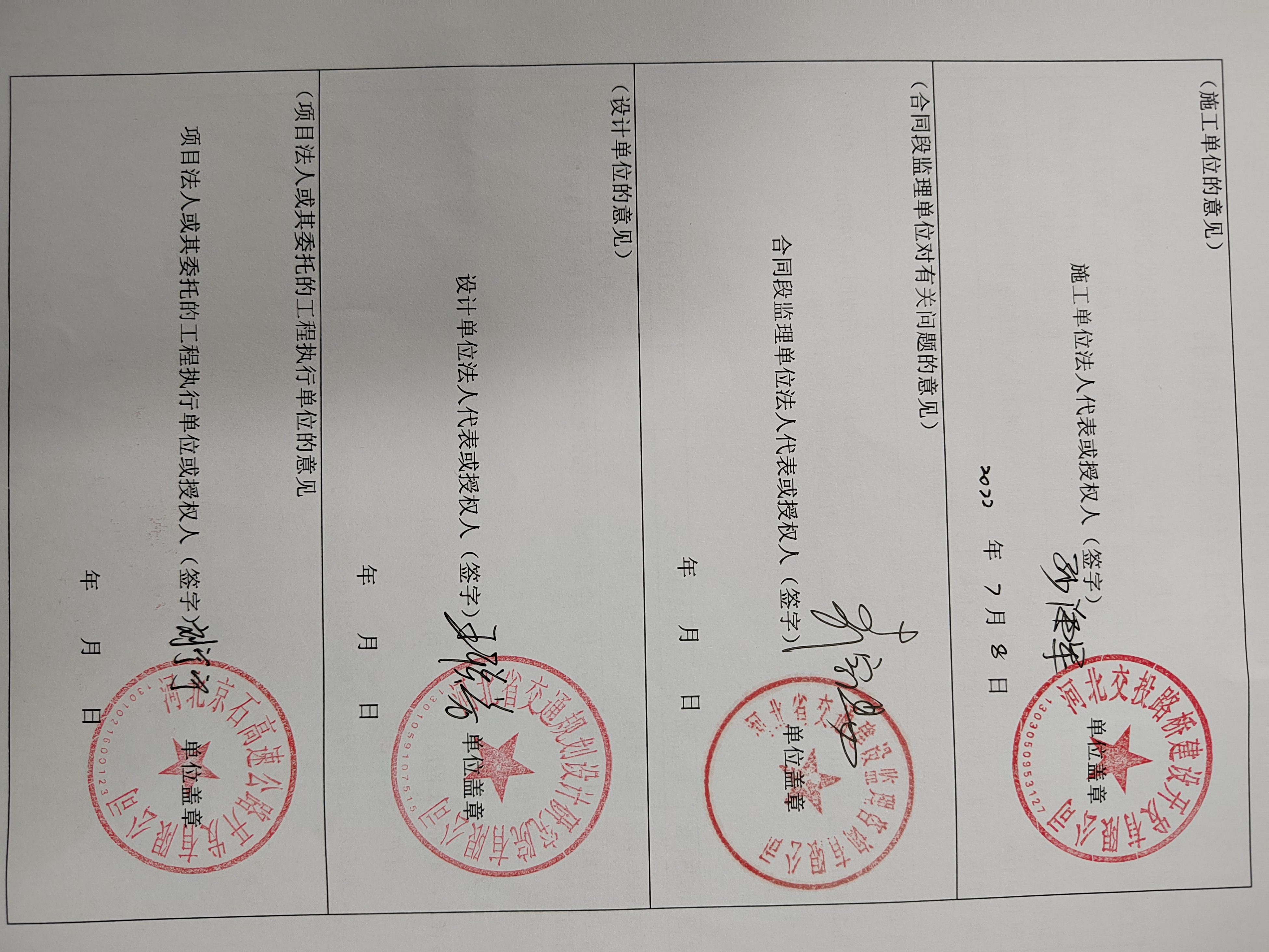 京港澳高速公路京石段沙河特大橋樁基防護(hù)處治工程驗(yàn)收證書