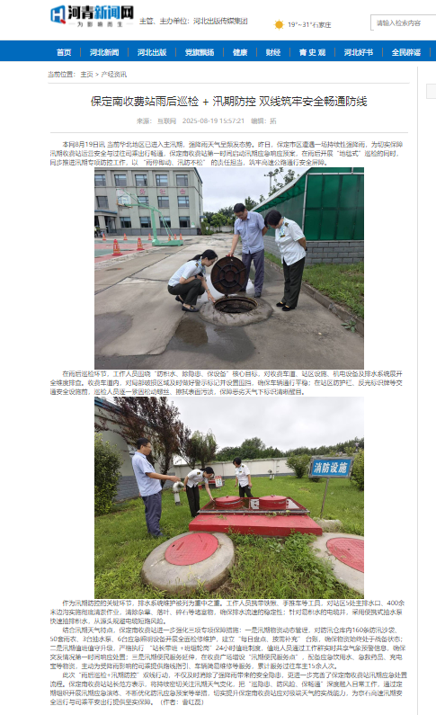 【河青新聞網(wǎng)】保定南收費站雨后巡檢 + 汛期防控 雙線筑牢安全暢通防線