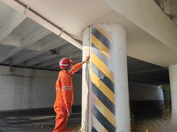 按照現(xiàn)行的交安設(shè)施的規(guī)范標(biāo)準(zhǔn),橋梁工程師對橋梁的防拋網(wǎng)、豎向防墜網(wǎng)、上跨橋的立面標(biāo)記及墩柱防護(hù)等部位進(jìn)行了全面排查,逐一統(tǒng)計被交道倒斜、缺失的標(biāo)志標(biāo)牌,磨損嚴(yán)重、模糊不清的標(biāo)牌標(biāo)識,銹蝕缺損的防護(hù)網(wǎng),確保排查全面到位。