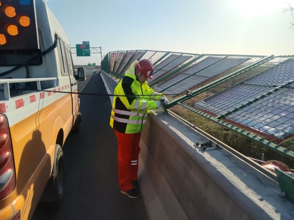 在實(shí)際“迎風(fēng)戰(zhàn)”中,藁城工區(qū)展現(xiàn)出了高度的責(zé)任感和專業(yè)素養(yǎng)。12日清晨,利用“封路”時(shí)機(jī)進(jìn)行了“風(fēng)后”應(yīng)急檢查。應(yīng)急三隊(duì)巡查至K210北京方向時(shí),發(fā)現(xiàn)20米左右的橋梁防拋網(wǎng)發(fā)生傾斜,隨時(shí)有墜落風(fēng)險(xiǎn)。巡查人員張陽、尤雁明迅速行動(dòng),他們一方面在倒伏路段設(shè)置警示標(biāo)志,封閉應(yīng)急車道,引導(dǎo)車輛減速繞行;另一方面,利用隨車攜帶的繩索等工具迅速將倒伏的防拋網(wǎng)與車輛進(jìn)行了緊急連接固定,防止發(fā)生二次事故;同時(shí)迅速通知承包商快速抵達(dá)現(xiàn)場進(jìn)行了清除加固,從發(fā)現(xiàn)險(xiǎn)情到處理完畢,僅用時(shí)40分鐘。