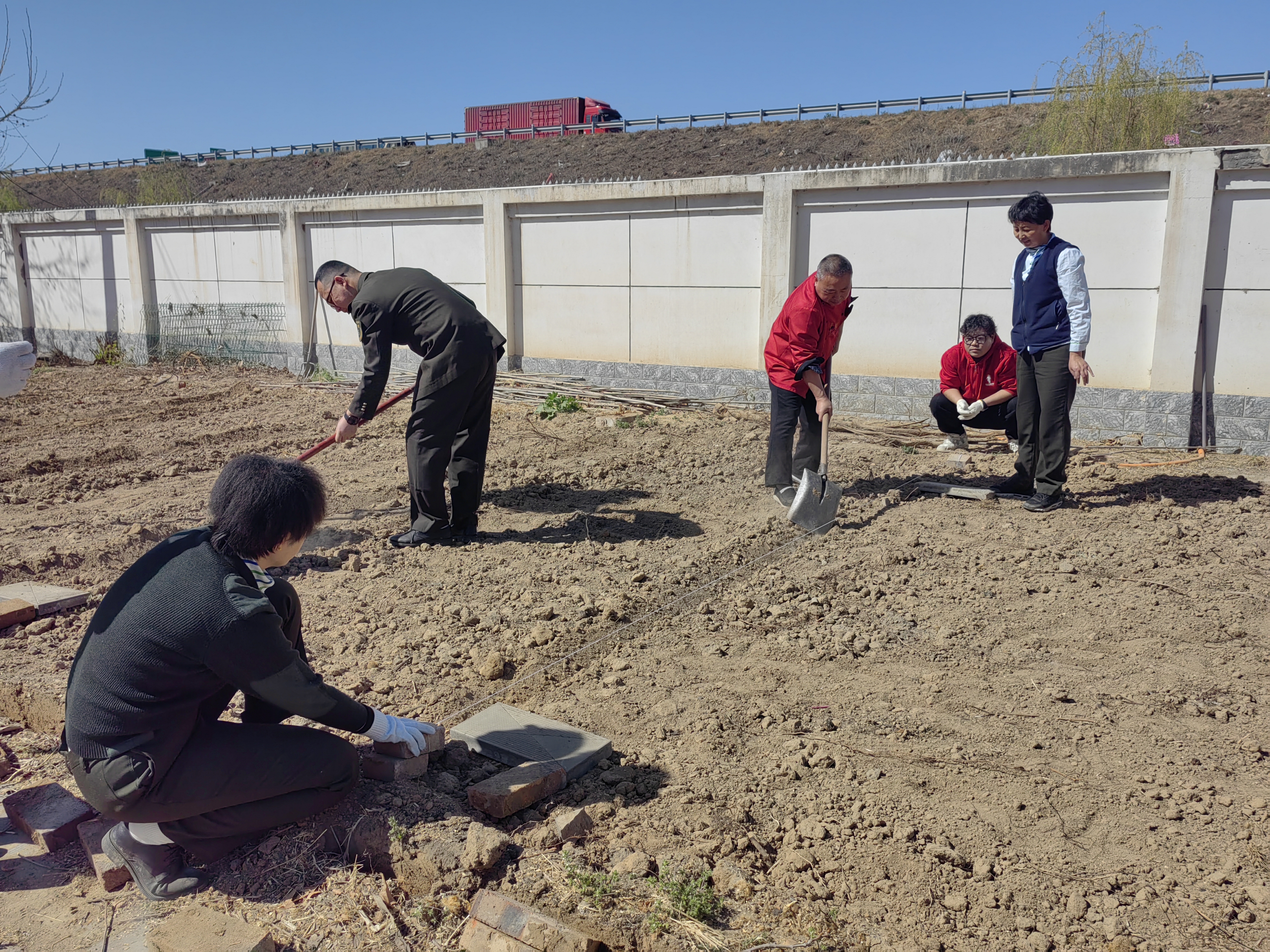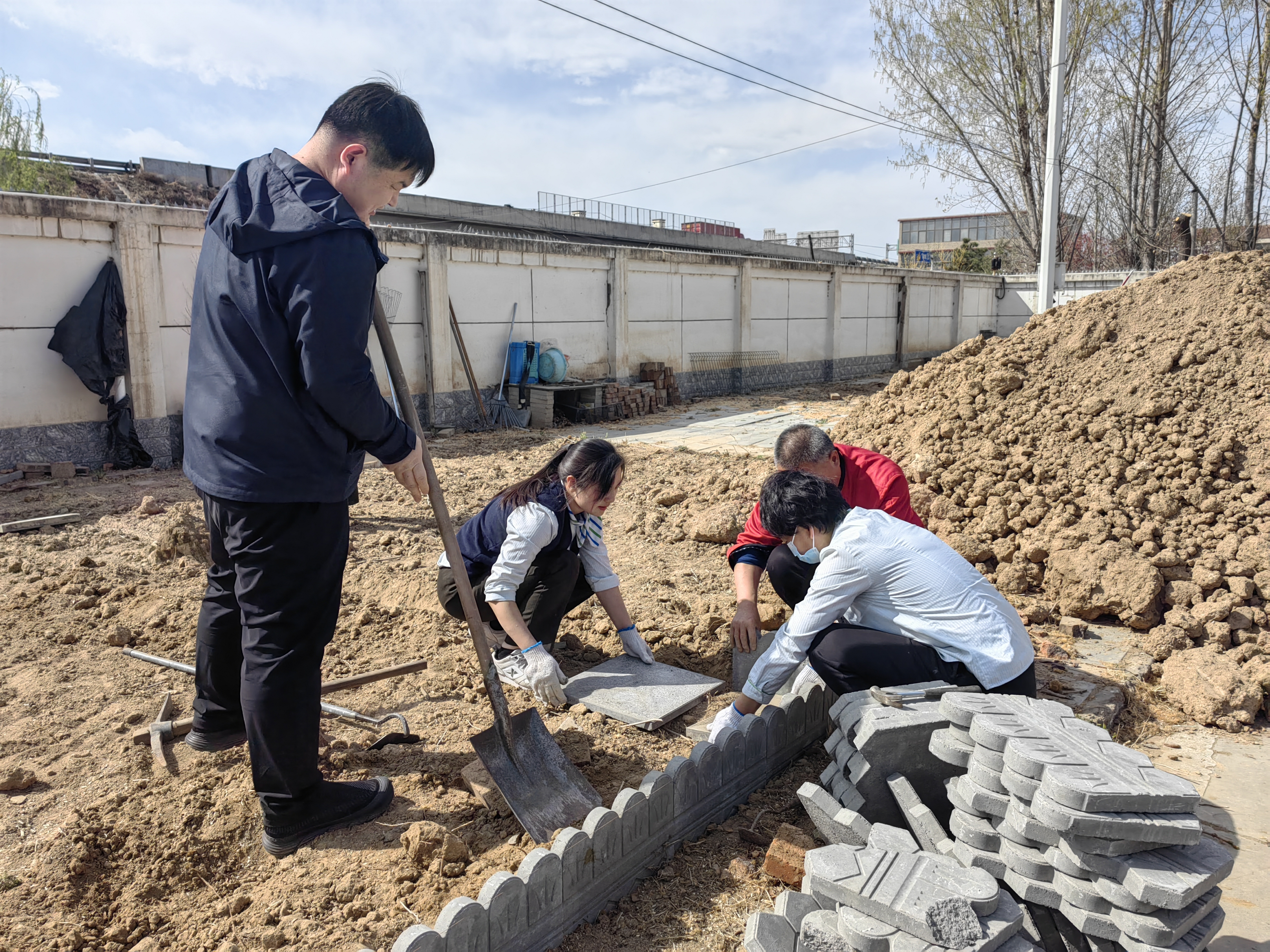 在鋪磚環(huán)節(jié),大家集思廣益,雖然不是專業(yè)的,但是在這個網(wǎng)絡(luò)發(fā)達(dá)的時代,大家對照手機(jī)里的教學(xué)視頻,將每塊磚錯縫排列,既能防止雜草滋生,又形成自然的導(dǎo)水槽。站長劉淑芳帶著“徒弟們”用棉線拉出筆直的基準(zhǔn)線,食堂“資深”的蘇師傅手持橡膠錘反復(fù)敲打校正,磚縫誤差嚴(yán)格控制在3毫米內(nèi)。新入職的昕瑤邊鋪磚邊贊嘆:“這手藝太牛了?!币帽娙斯笮Α4蠹腋傻脽峄鸪?,汗水浸透了衣服,也不知疲倦,仿佛閃念間看到了不久后菜園里豐收的場景。
