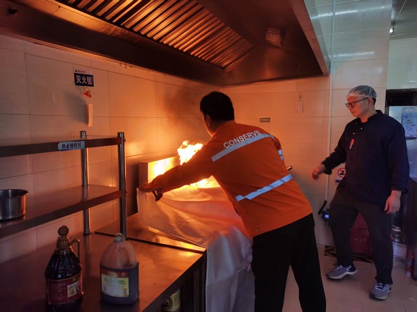 實操環(huán)節(jié)中,安全員針對三類器材的使用場景與操作要點開展精準(zhǔn)教學(xué)。在防毒防煙面具使用模塊,重點演示了濾毒罐密封性檢查、頭帶松緊調(diào)節(jié)及氣密測試技巧,指導(dǎo)員工通過“負(fù)壓測試”確保佩戴合格,掌握“深慢呼吸、小步移動”的逃生要領(lǐng)。滅火毯實操現(xiàn)場,手把手傳授“握角抖開、上風(fēng)向覆蓋、邊緣壓實”的規(guī)范動作,明確油鍋等初期火災(zāi)需覆蓋15分鐘以上的處置標(biāo)準(zhǔn),杜絕復(fù)燃風(fēng)險。