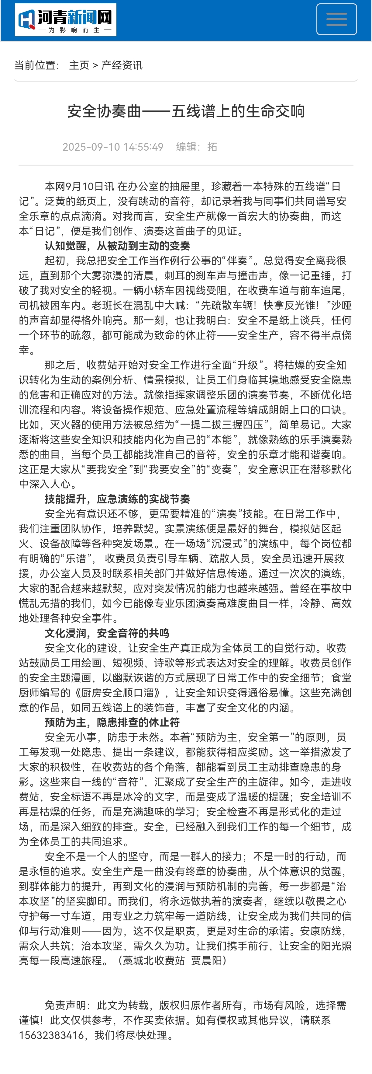 【河青新聞網】安全協(xié)奏曲——五線譜上的生命交響