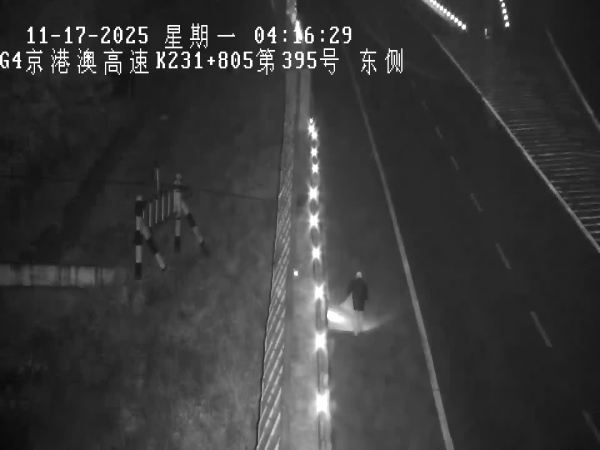 2025年11月17日3時(shí)57分,智慧調(diào)度監(jiān)控中心接到省中心電話通知,京石高速石家莊方向K233處快車道有行人走動(dòng),行人在車道走動(dòng)不僅違反了高速公路管理規(guī)定,更將自身生命安全置于險(xiǎn)境,同時(shí)也對(duì)過往車輛造成干擾,極易引發(fā)交通事故。