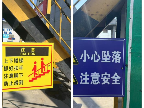 為切實消除安全隱患,保定南收費站對站內(nèi)所有重點區(qū)域進(jìn)行全面排查,精準(zhǔn)劃定安全管理邊界。在收費車道、廣場、設(shè)備區(qū)、員工通道等關(guān)鍵位置,統(tǒng)一更新了一批清晰、耐久的安全警示標(biāo)識和提示牌,內(nèi)容涵蓋最大承載限制、禁止超載、禁止煙火、小心地滑等警示語,以及應(yīng)急聯(lián)系方式和風(fēng)險提示。標(biāo)注作業(yè)區(qū)域范圍,規(guī)范收費現(xiàn)場操作;通過視覺化的標(biāo)識引導(dǎo),讓“安全規(guī)則”一目了然,時刻提醒全員繃緊安全之弦。